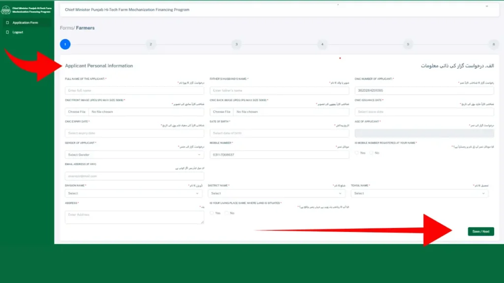 Upload the front and back images of your CNIC each under 50 KB). After completing all fields, click “Save and Next.”